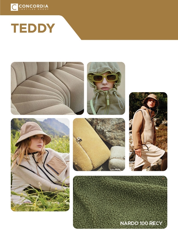 Soft, cozy, and unmistakably stylish , our Teddy inspiration captures the essence of comfort dressing for the Fall/Winter season. Think faux furs, printed teddy fabrics, and bonded polar fleeces that not only feel luxurious but also perform in everyday life. These heavyweight materials are designed with both fashion and function in mind, making them ideal for athleisure, activewear, and casual outerwear.
