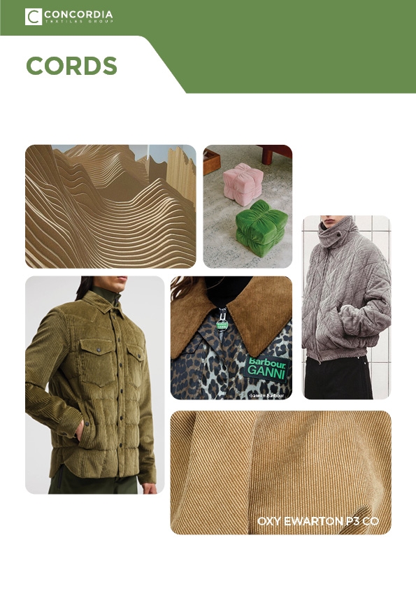 Our Corduroy inspiration brings back an all-time classic with a fresh twist. Known for its subtle ridges and soft, warm handfeel, corduroy has long been a fabric that balances durability with everyday comfort. This season, we’ve reimagined the nostalgic corduroy effect across a variety of modern fabrics. The result is a timeless look that feels both familiar and new.